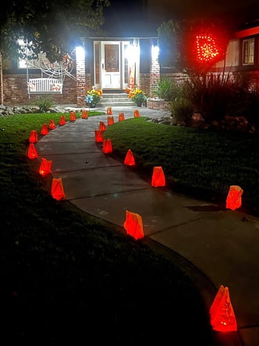 Halloween Luminary Bags add a nice touch to the outdoor ambiance. The good ones even come with the tea lights inuded, (battery operated, of course!)