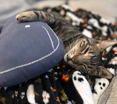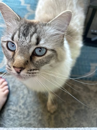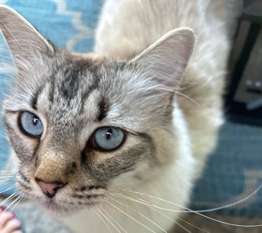 Named after the Star Wars character Ashoka Tano whose face markings were too similar to ignore. A rescue cat who's a bit skittish, but a beloved member of the family.