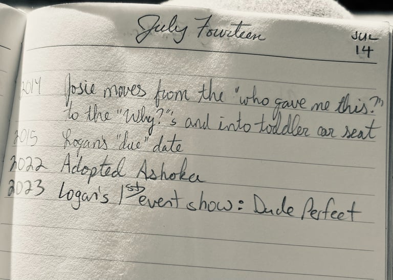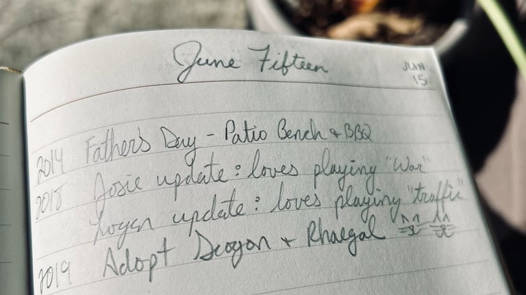 Once my Almanac was dated and prepared, I started filling in those obvious dates - Birthdays, Anniversaries, any significant milestones each one of us likely has noted somewhere, in chronological order. (Oldest year reference at the top of the page)