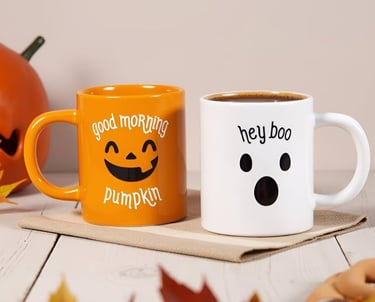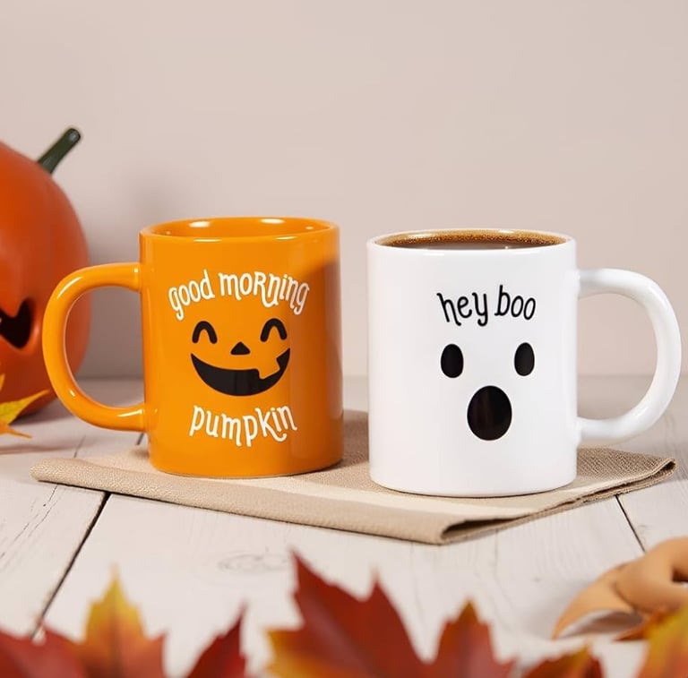 This cute pumpkin and ghost mug set is exactly how I love to start off the mornings in my Halloween season… in my case: coffee with a side of affection (xoxo)